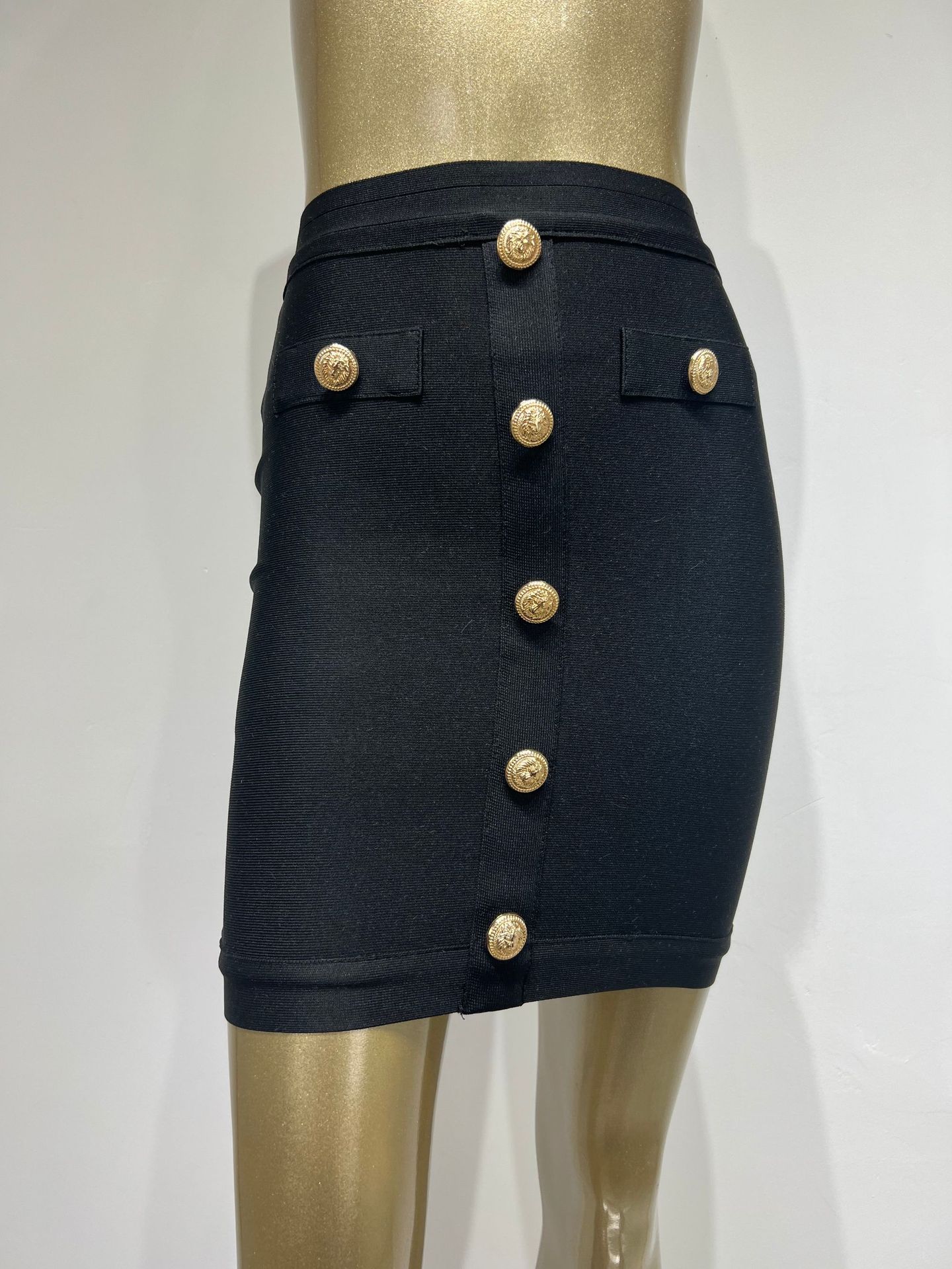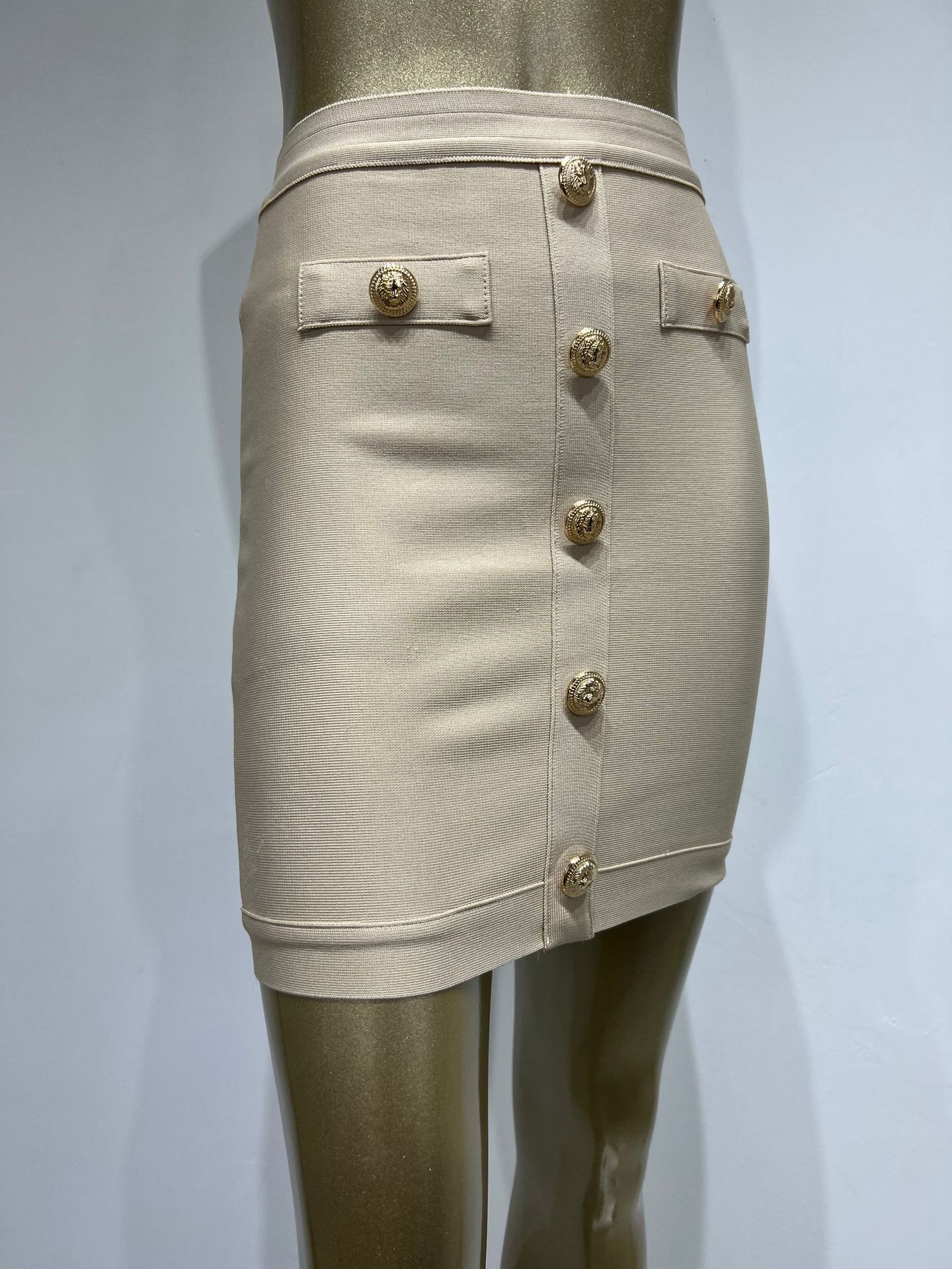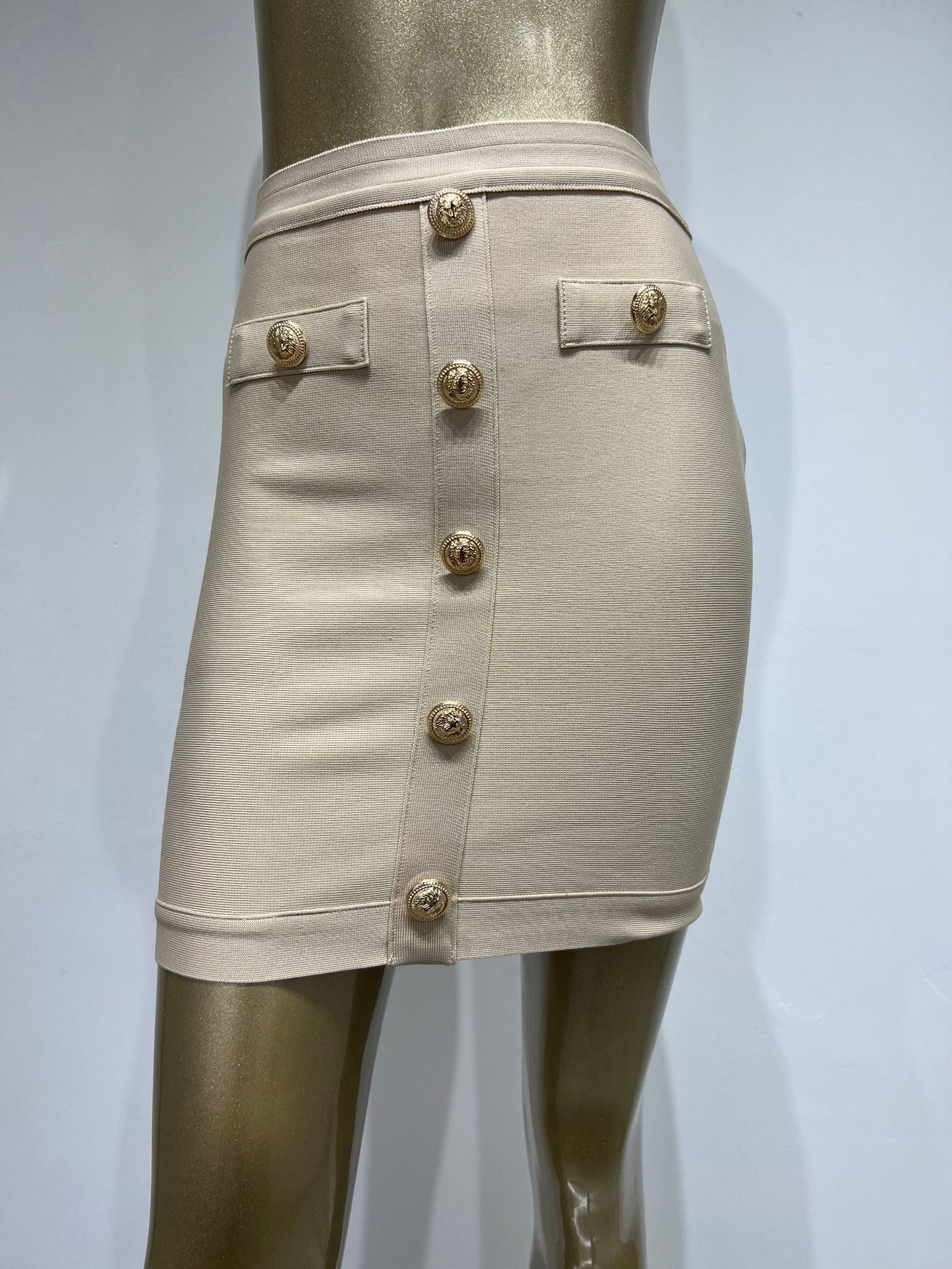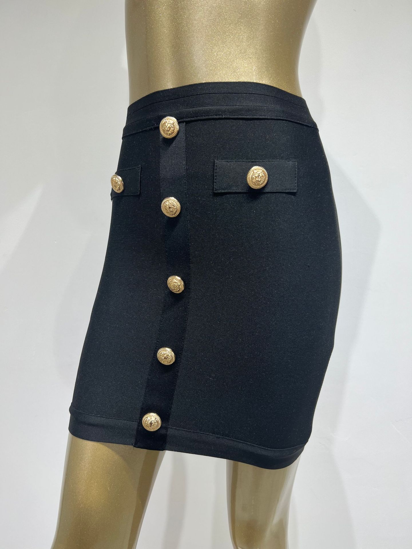 Bandaged Figure-Hugging Skirt with Metal Buttons, Sizes XS-L