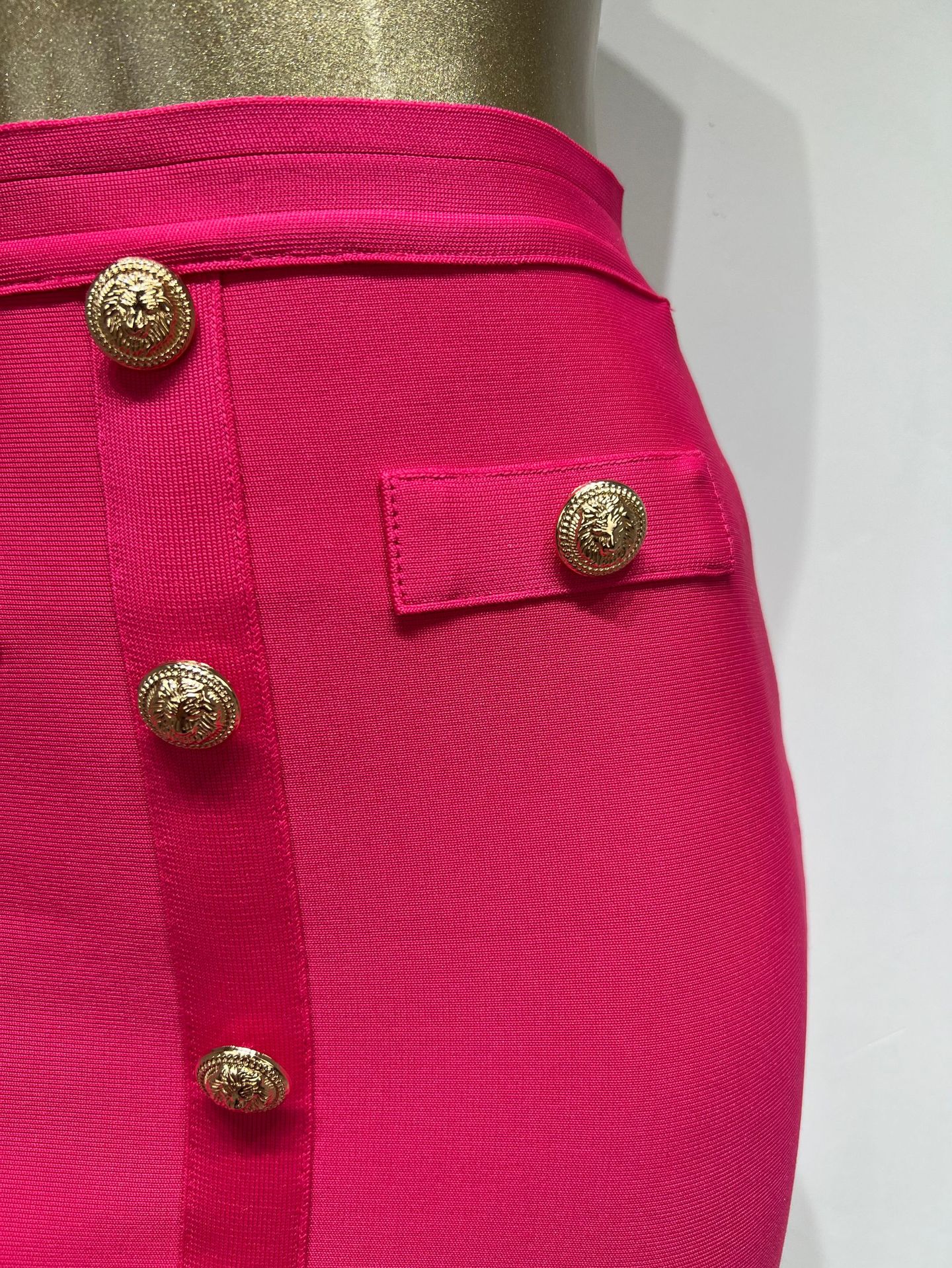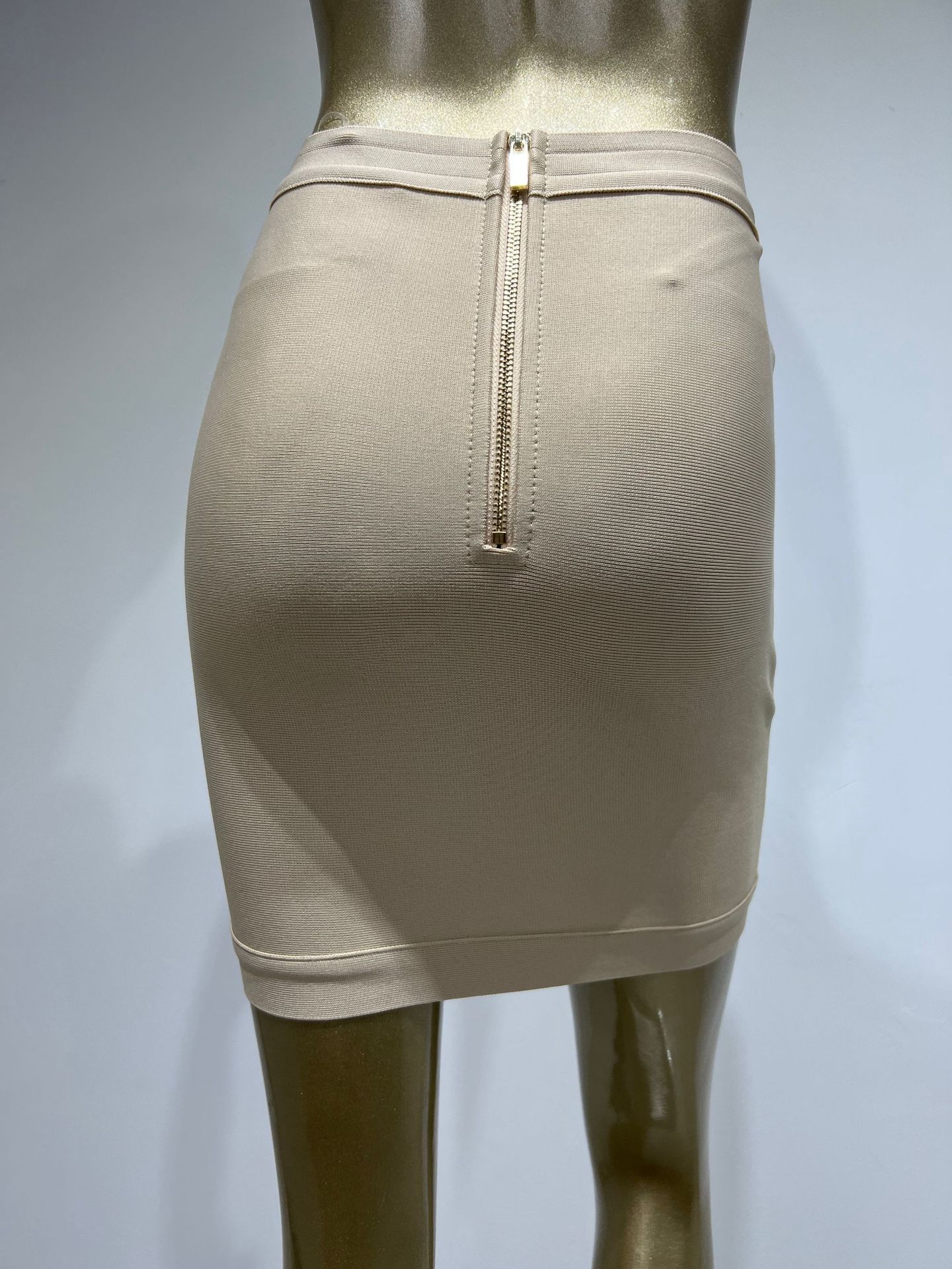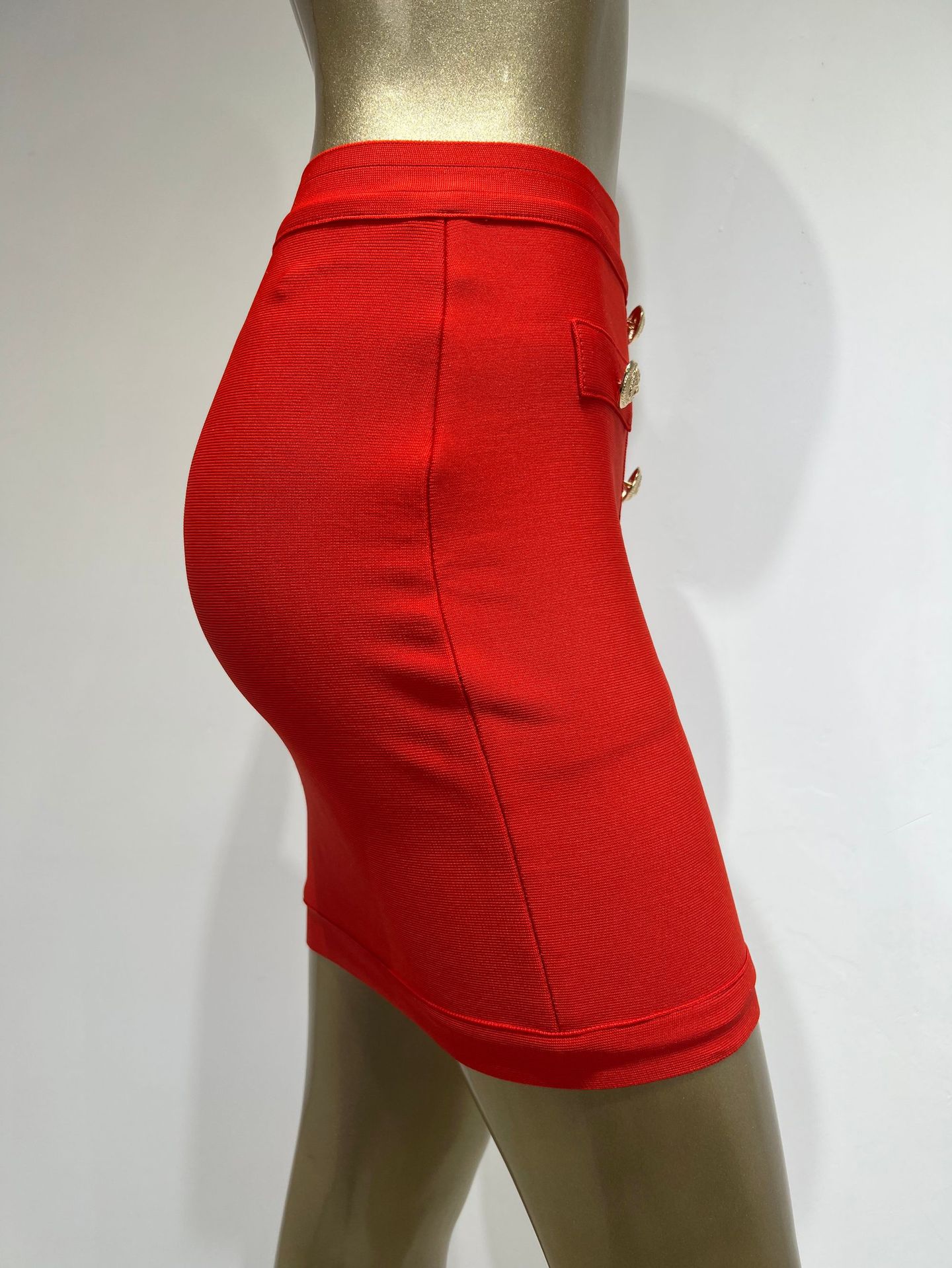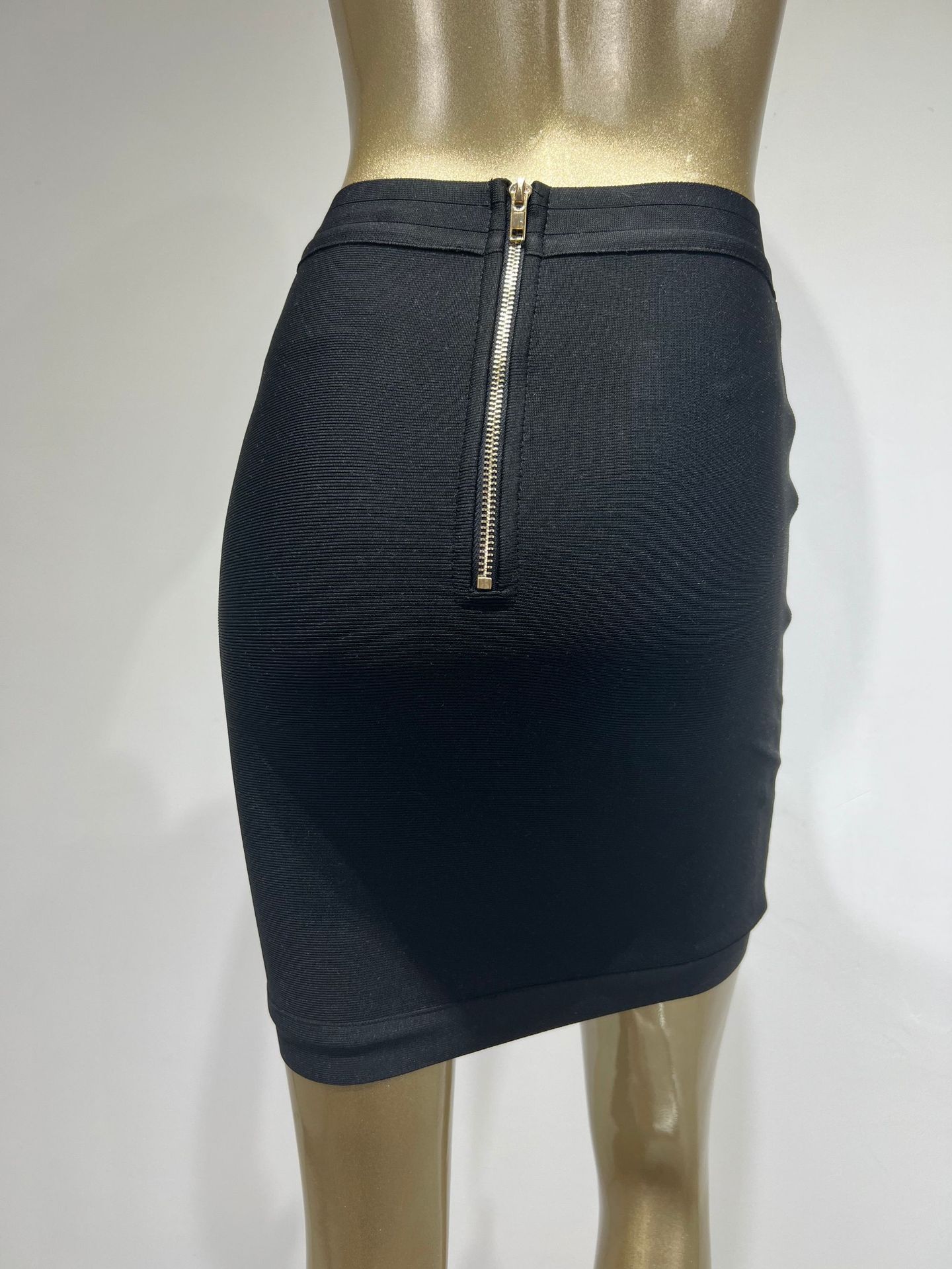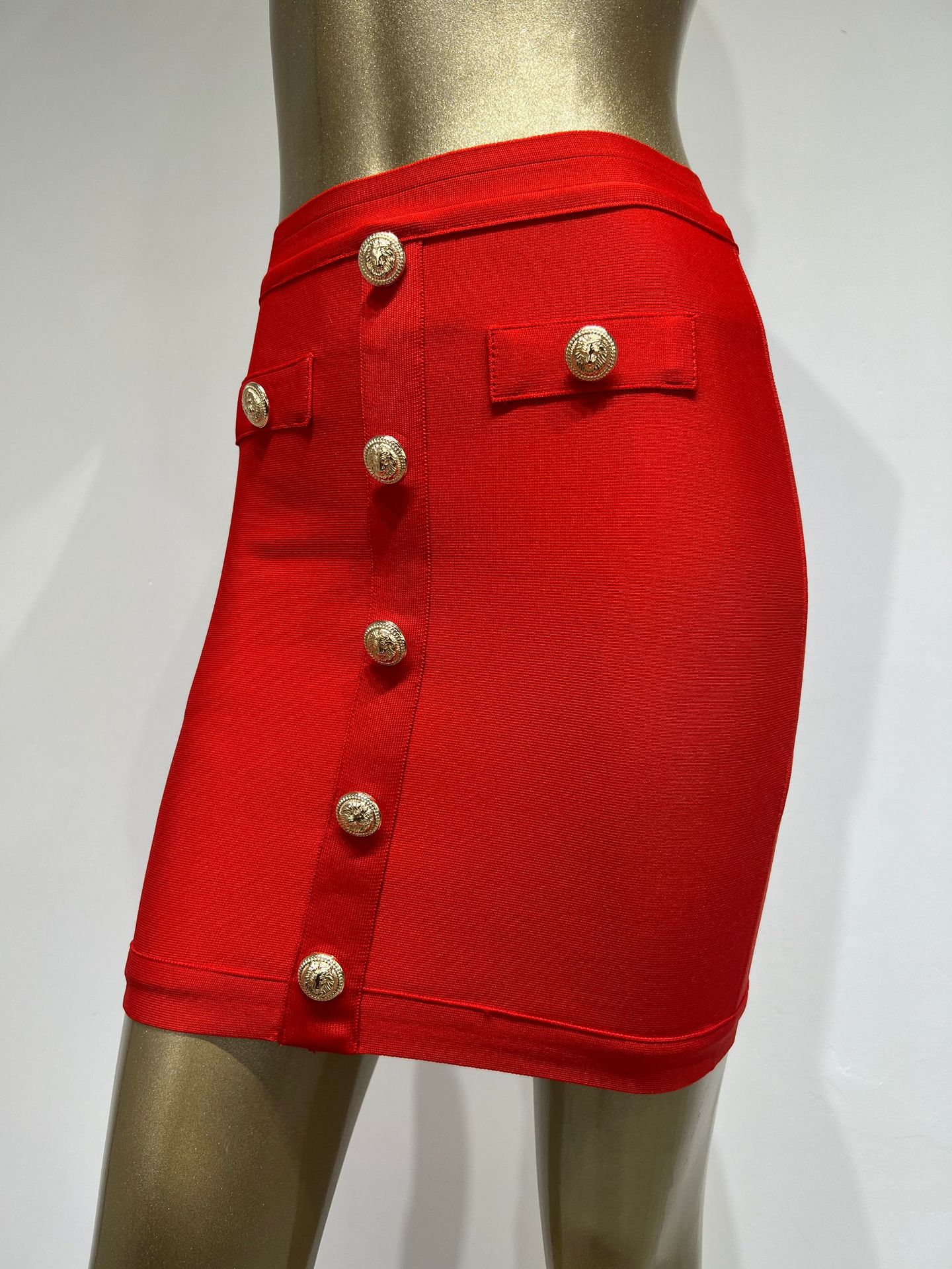 Bandaged Figure-Hugging Skirt with Metal Buttons, Sizes XS-L